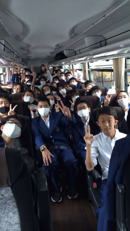 新幹線からバスに乗り換えました。みんな元気です。