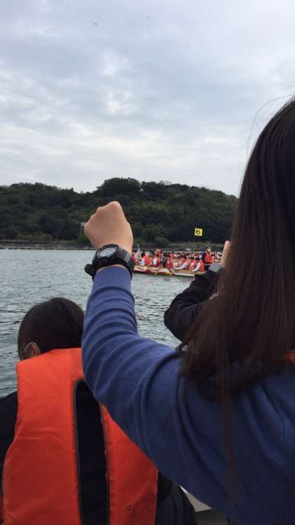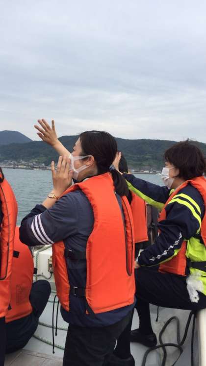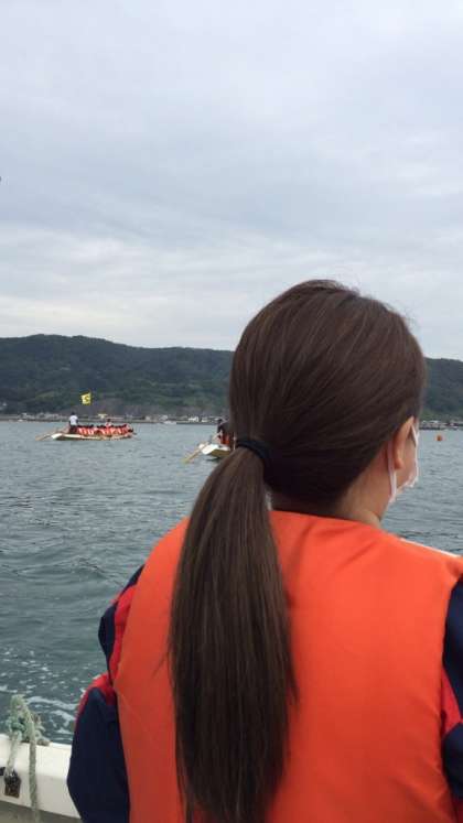先生方も伴走する船から応援です。