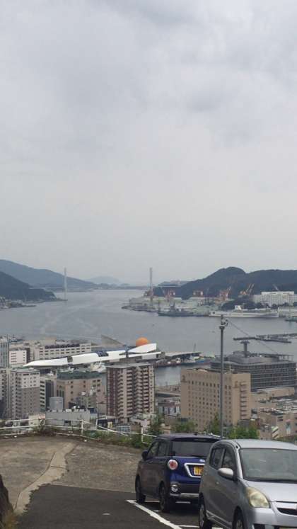 ホテルに到着しました。すごい高台にあり、絶景です。雨も止んでいます。