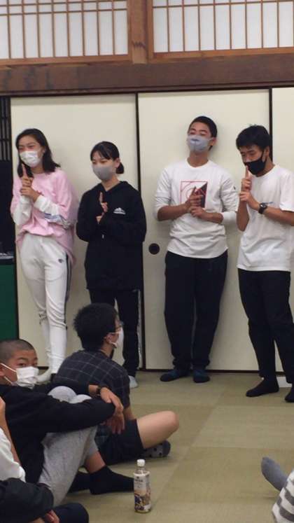 レクレーションの時間です。前に立つ生徒、見つめる眼差し。楽しい時間です。