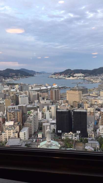 朝から良い天気です。眼下に海と長崎観音が見えます。