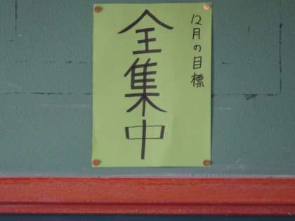 黒板の上には12月の目標
