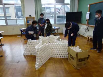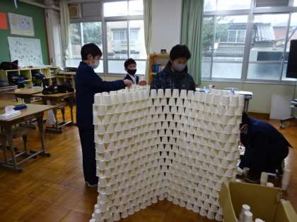 1組美術(紙コップタワー)