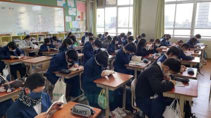 朝読書では早速書架から本を選んでいる姿もありました。