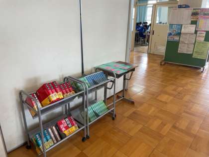 移動書架に、国語辞典や英和辞典などを置き、