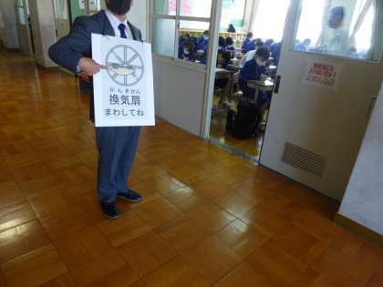 中学校では職員朝礼で換気、