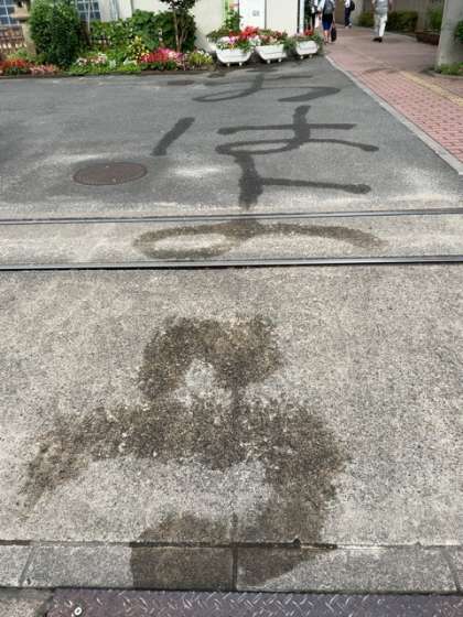 地面に「おはよう」と書いてみました。