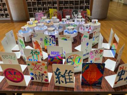 ピロティーでは美術科の生徒作品が