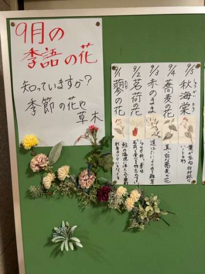 9月の「季語の花」が掲示されています。
