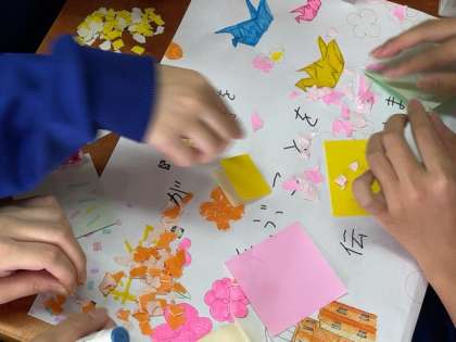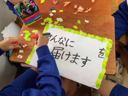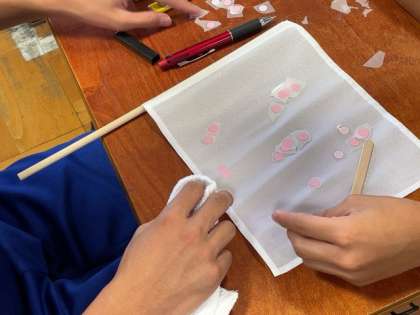 修学旅行で使う「ミニフラッグ」も作成し、