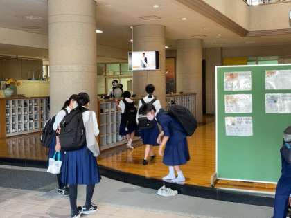 校門で整列しての選挙活動は自粛しました。