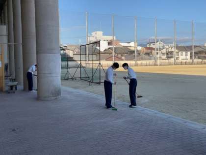 校舎の入り口付近の掃き掃除をしてくれていました。