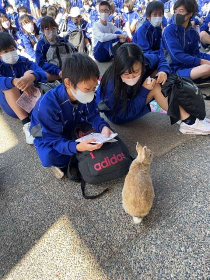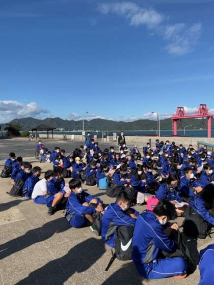 これから大久野島での班別研修です。
