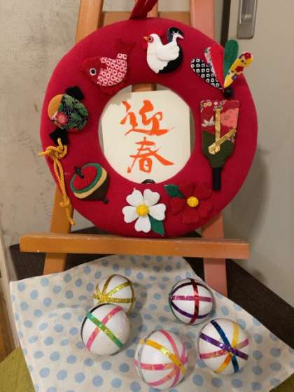 手作りの「迎春」の飾りが登場です。