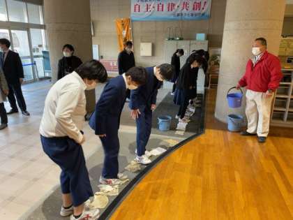 上靴の土を拭(ぬぐ)うために
