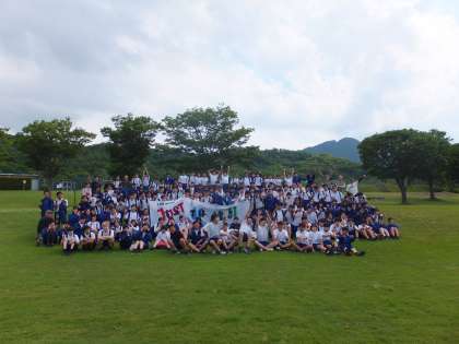 2年になって初めての本格的な行事として希望が丘への校外学習を実施しました。天候が心配されましたが,朝からの霧雨も午前中にはすっかり上がり,野外炊爨で自分たちで作ったカレーライスをおいしく頂いた後は,フィールドアスレチックで大暴れ。記念写真撮影の後 バンブーサーフィン大会まで行い,目いっぱい楽しんできました。みんないい思い出ができましたね。お疲れさまでした!