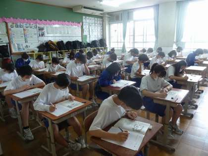 今日も7時30分ごろに登校し、ピロティや教室でテスト勉強をしている人がいました。