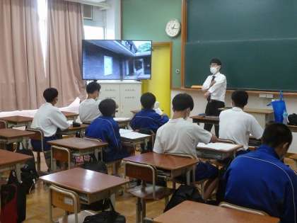 高校進学は進路の入り口です。どこの高校に行くかも大事ですが、その高校でどれだけ頑張れるかも大事です。自分が頑張れる高校を選ぶことが大切です。今日の出前授業をきっかけに高校について考えてください。