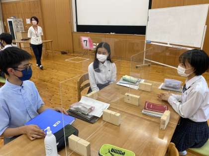 七中のスローガン決定の方法として、タブレットを使って全員が投票して決めることや、スローガン案を考えた人の演説を動画で見る、というところが、特に各校の関心を寄せていました。