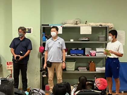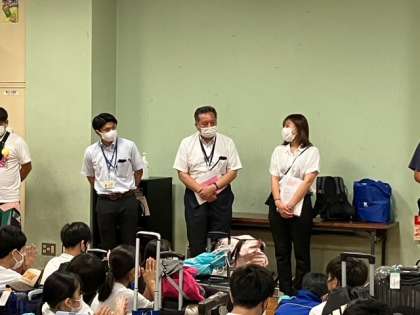 今日から3日間の修学旅行に出発します。添乗してくださる旅行社の方、カメラマン、サポーターを紹介して、さあ、出発です。