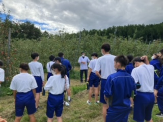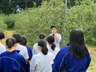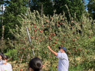 ソーセージ作りのあとはリンゴ園に行きました。松川町は標高800mで以前は寒くてリンゴ作りが難しかったですが、温暖化の影響で美味しいリンゴができるようになったそうです。しかし、後継者不足が大きな問題だそうです。