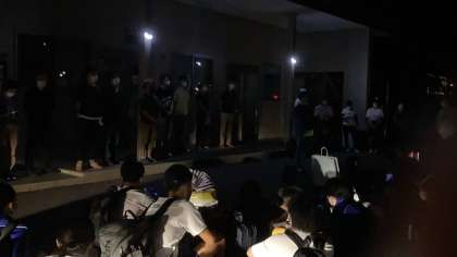 バスの灯りで照らしてもらっています。