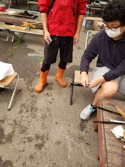 火起こし体験中
