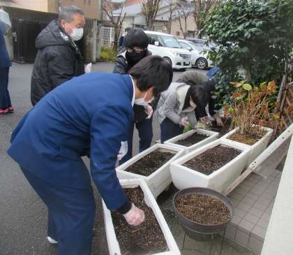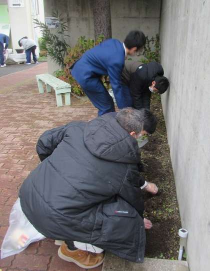 今日の放課後、美化委員がチューリップの球根を植えてくれました。来年の4月には赤・青・黄色のきれいな花が新入生を迎えてくれると思います。