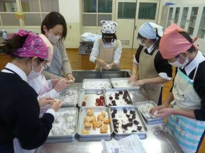 ハンドメイク部が大福もちを作りました。最初に上新粉と砂糖を水で混ぜ、蒸し器で蒸した後、手でこねました。イチゴやミカンをあんこで包んだあと、もちでくるんで完成です。
