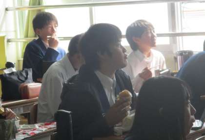 今回は「歯と食のクイズ」というテーマで、1年生の保健安全委員が作ったクイズに先生4人が答えるという構成でした。
