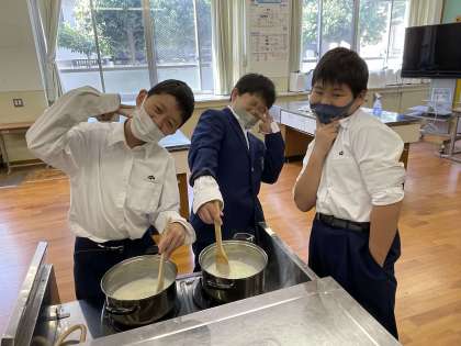 お味噌汁グループとわらび餅グループに分かれて作りました。