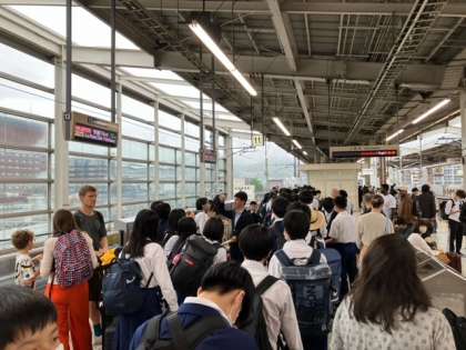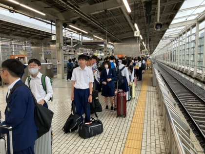 新幹線ホームに移動しました。9:08発のひかり号に乗ります。
