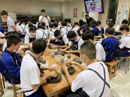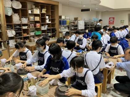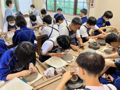 午後からは伊豆高原で自然体験の予定でしたが、荒天のため、八幡野窯での手びねり陶器作りに変更になりました。
