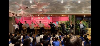 昨日のレクで教員チームがジャンボリーミッキーを踊りました。