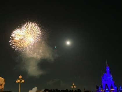 花火とフルムーンとシンデレラ城を見てホテルへ戻ります。