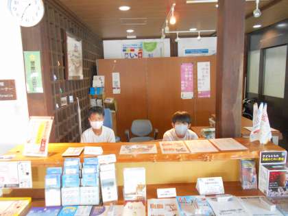 休憩所で案内しています。