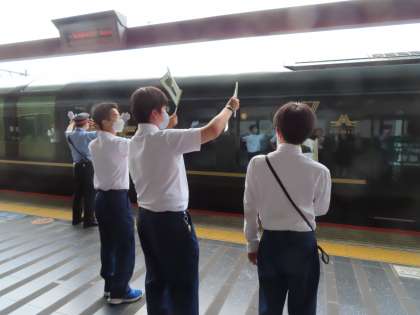 トワイライトエクスプレス瑞風のお見送りをしています。