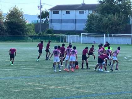 ラグビー部は吉祥院グランドで四条中学校と闘いました。相手ゴールに何度か攻め込みましたがトライはできず0-24で敗れました。