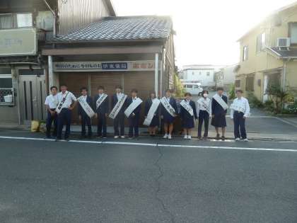 朝から生徒会役員選挙の候補者が校門であいさつ運動をしてくれています。候補者の顔と名前を憶えてもらうことと、あいさつでさわやかな一日を過ごしてもらうことをめざしています。