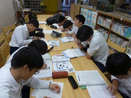 3年生が放課後にピロティで自主的に学習しています。文科省は主体的な学習を「学ぶことに興味や関心を持ち、自己のキャリア形成の方向性と関連付けながら、見通しを持って粘り強く取り組み、自己の学習活動を振り返って次につなげる」ことと言っています。