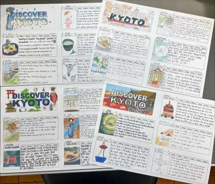 英語の時間に作成した観光案内パンフレットDISCOVER KYOTOが完成しました。英語科で12枚を選び、梅小路公園などにあるカフェにお届けしてきました。これから会社内で内容の確認、検討をして、問題がなければ店内で掲示してくださるそうです。