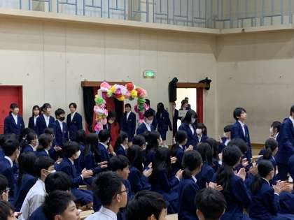 緊張した面持ちで入場する1年生でしたが、吹奏楽部の演奏に合わせて、2・3年生がとても温かく迎えてくれました。