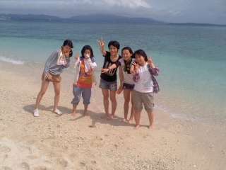沖縄らしいコバルトブルーのビーチです。ビーチバレーをして楽しんでいるグループもありました。
