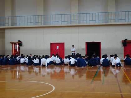 先週、修学旅行に向けて整列隊形の練習をしました。
