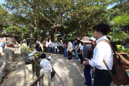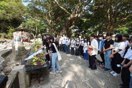 ひめゆり祈念資料館で献花、黙祷、記念品の奉納をしました。
