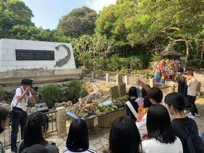 ひめゆり平和祈念資料館での献花や黙祷の様子です。