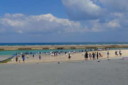 引潮で浅くなってしまいましたが、海を楽しんでいます。