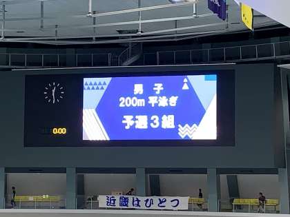 男子200m平泳ぎ 予選に出場し、全体の3位で決勝進出を決めました。
