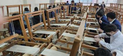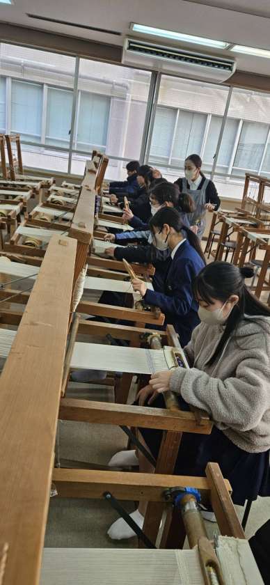 はじめての西陣織体験にみんな集中して