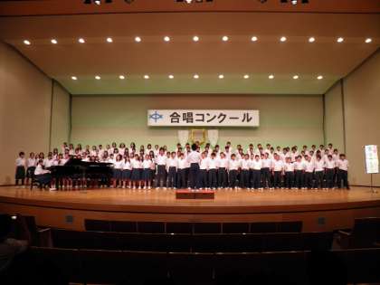 10月2日(火)七条中学校の合唱コンクール(選択曲の部)を京都外国語大学のホールを借りて行いました。昨年に続き、本格的なホールでの合唱コンクールで大いに緊張もし、いい合唱を歌うことができました。コンクールですから金、銀賞はつきましたが、いい経験をすることができました。最後に明日の七中祭最終日のために全体合唱を練習して、閉会しました。